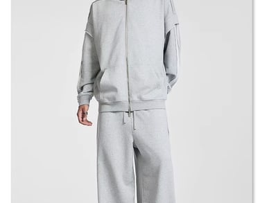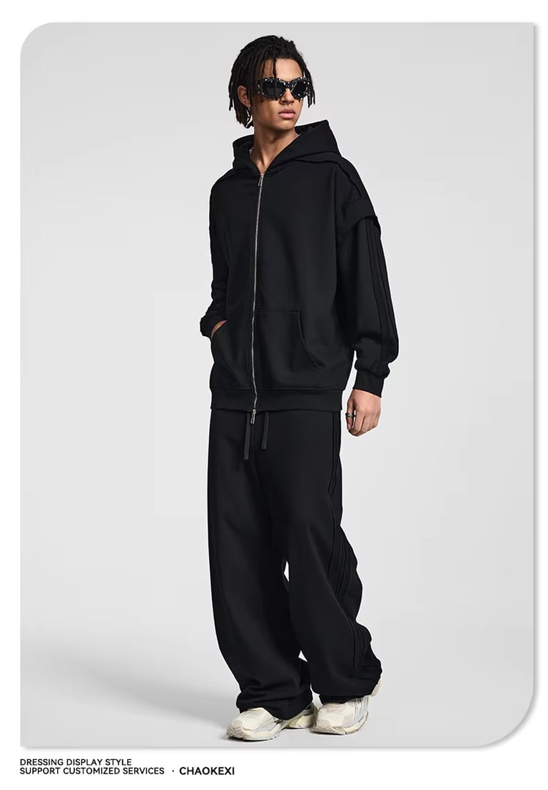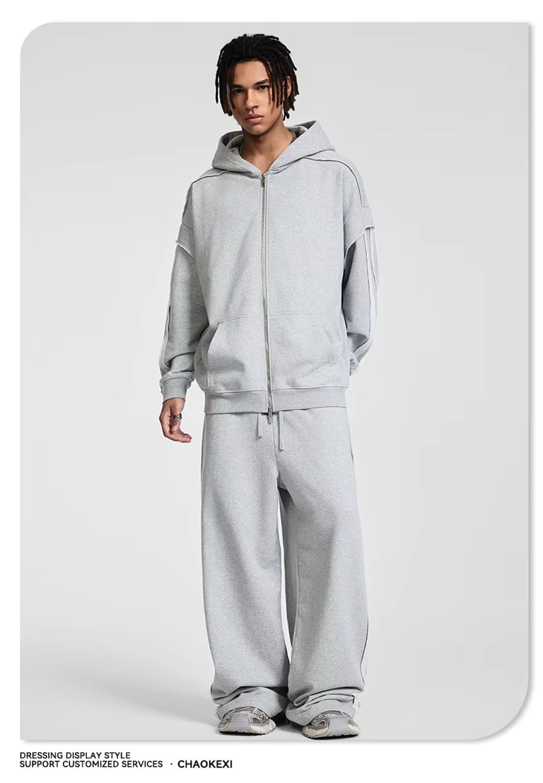 Custom 420gsm Baggy Fleece Patchwork Clothing 100% Cotton Luxury Sweatpants Zip up Hoodie Tracksuit Set for Sweatsuit Men